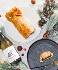 Wellington confectionné à partir de saumon du Nouveau-Brunswick, d'épinards, de fromage à la crème, et d'une duxelles de champignons, le tout enveloppé dans une délicieuse pâte feuilletée. Ce plat est préparé artisanalement et convient aussi bien pour un souper raffiné que pour un brunch.